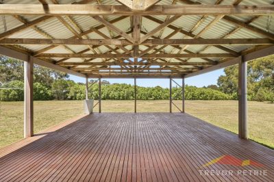 * The large, covered timber deck extends the living space outdoors, creating an ideal spot for family BBQs, entertaining guests, or simply enjoying the peaceful rural views.